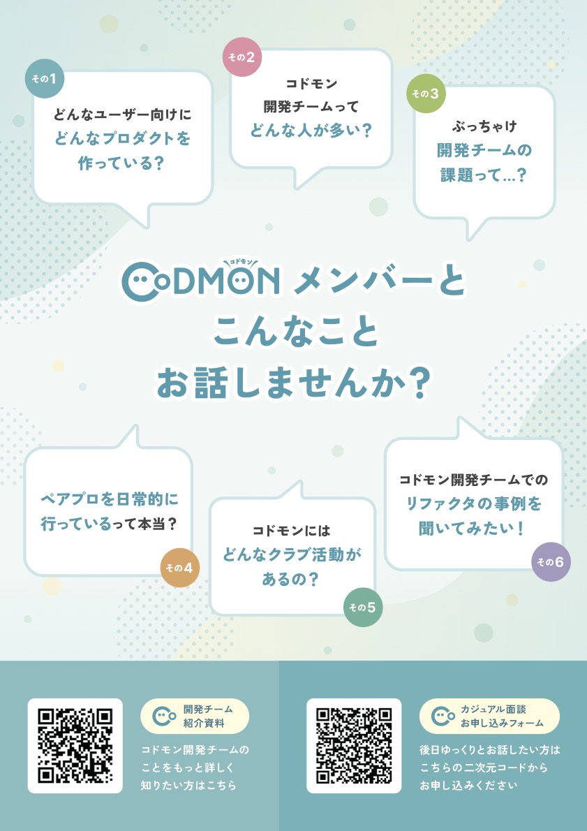 イベント当日、またこのふりかえり記事を読んでご興味を持ってくださった方はぜひお気軽に情報交換をしましょう!コドモンのPitta経由でお声がけいただくもよし、選考を検討されている方は求人情報からご連絡いただくもよしです!