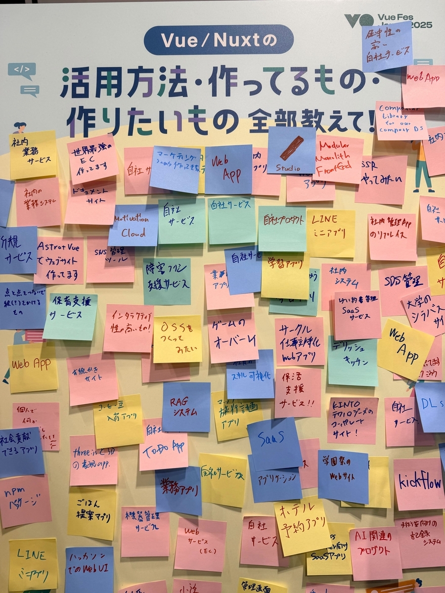 各セッションについては多岐に渡りましたが、AI関連の内容・Vue.js/Nuxtの最新技法や開発体験(DX)改善が多かったように感じました。