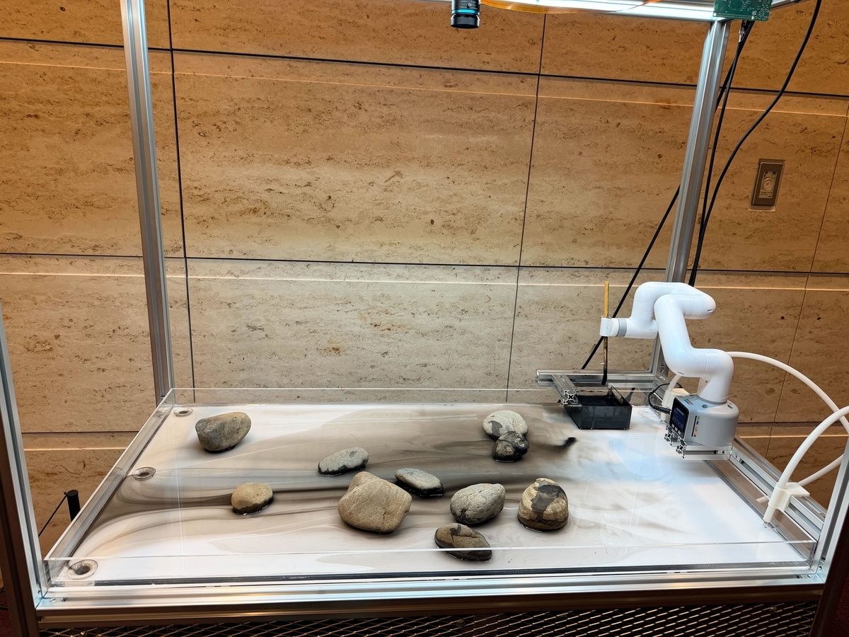 墨と水の流れをロボットで再現し、伝統とテクノロジーを融合したアートと説明がありました。