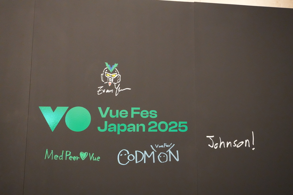 Vue Fes Japan 2025のロゴの近くにEvan You氏のサインがあります!