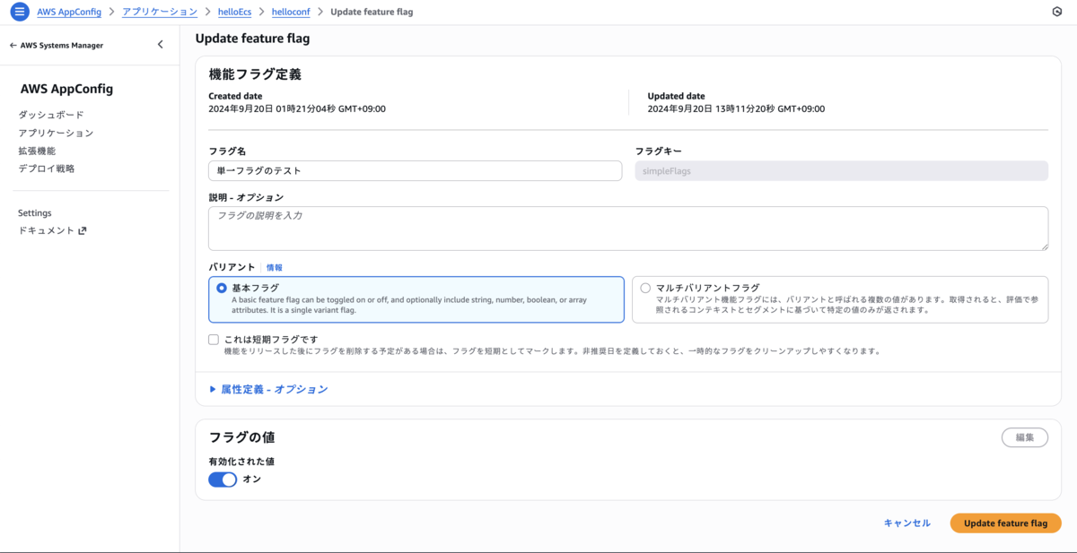 当該サービスの Feature Flags 機能を利用することで、アプリケーションの機能のオンオフを柔軟に制御できます。